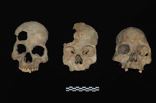 우리는 굴이 아니라 바닥이 항아리 모양인 큰 구덩이 안에 있었다. 구덩이 경사면을 따라 유해와 유품들이 5층으로 뒤섞여 쌓여있었다. 층 사이에는 마사토와 진흙, 잡석들로 채워져 있었는데, 4층의 일부 뼈들은 그을린 상태였다. 뼈들은 서로 뒤엉켜 있어 하나씩 식별할 수가 없었다. 보존상태도 최악이었다. 이곳에서 모두 3246점의 뼈가 발굴되었다. 머리뼈 조각, 치아, 등뼈, 손가락뼈, 발가락뼈, 허벅지뼈를 맞춘 결과 앞에서 추정한 208명이 나왔다. 아이들의 유해는 여인들의 유해와 함께 뒤섞여 출토되었다. 엄마가 아이를 안고 죽었으리라. 상당수가 부서진 위아래턱에 치아만 일부 남아있을 뿐이었다.